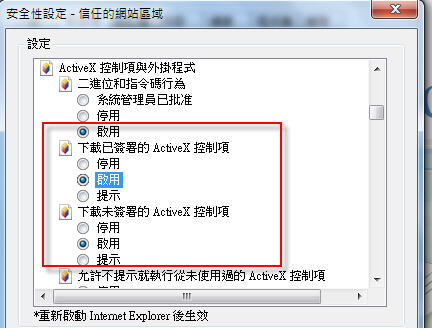 IE安全性詳細設定值...