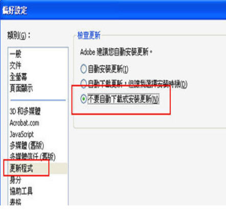 6-1.關閉Acorbat Reader 9自動更新: