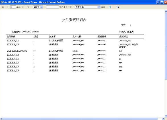 首 頁 --> ISO文件管理 --> ISO文管報表 --> 文件變更明細表