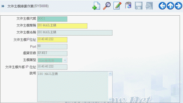 當系統上線之前,或者是新增文件主機時,您可以透過本維護作業,建立文件存放路徑,系統將依據此資訊存放檔案。