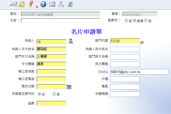 首 頁 --> OAS 電子表單清單 --> 名片申請單