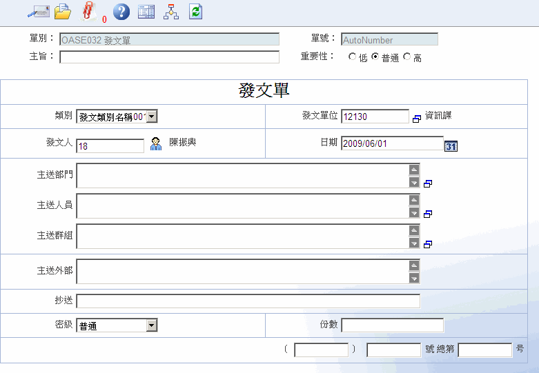 首頁 --> OAS電子錶單清單 --> 發文單