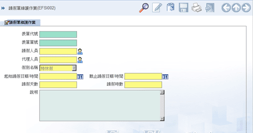 首 頁 --> 系統管理程式 --> 系統資料維護 --> 請假單維護作業