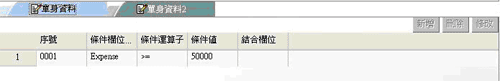 • 如此則在上面的表格中會出現一筆記錄(如下圖),按下圖示進入設定條件式。