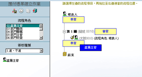 • 請選擇左邊的流程項目,再拖拉至右邊適當的流程位置: